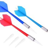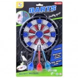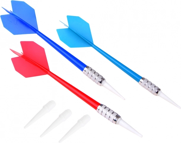 Sada obsahuje tri šípky s kovovými držiakmi a bielymi plastovými hrotmi, ideálne pre bezpečné vnútorné hry.