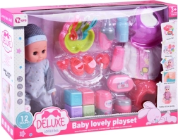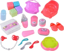 Súprava obsahuje fľašku, cumlík, plienku, nočník a mnoho ďalších doplnkov pre kompletný zážitok z hry s bábikou.