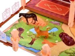 Pozoruhodné detaily ako stajne, ohrady a zvieratá sú súčasťou setu, ktoré dodávajú detskej hre na realistickosti a zábave.
