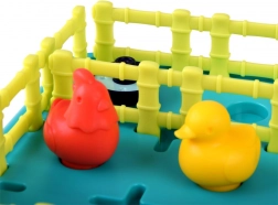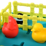 Plastová herná doska s jasne farebnými zvieratkami a plotmi ponúka vizuálne pútavý zážitok, ktorý stimuluje predstavivosť a kreativitu.