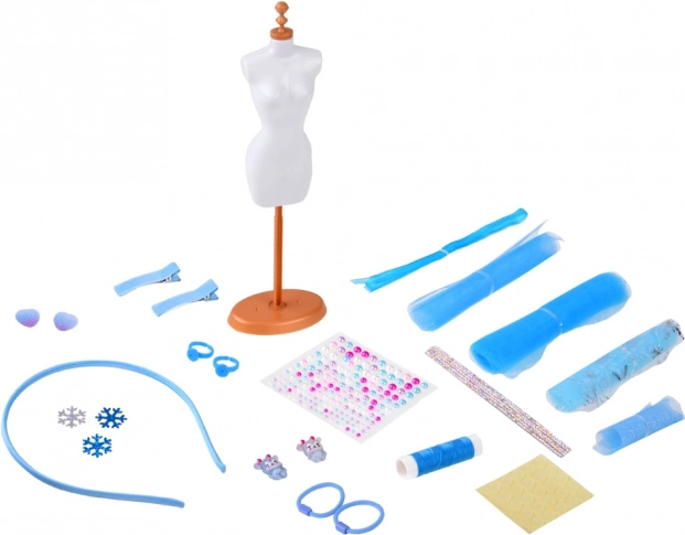 Súprava obsahuje širokú škálu textílií vrátane tylu, stúh, korálok, ozdôb a ďalších dekoratívnych prvkov, ktoré podporujú kreatívne tvorenie.
