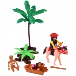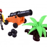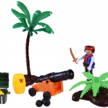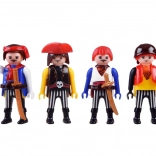 Štyri odlišné figúrky a zvierací parťák vytvárajú živú posádku. Doplňte ich člnom, palmou a sudmi a vznikne nekonečné množstvo pirátskych príbehov.