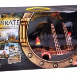 Táto detailne spracovaná pirátska loď s čiernymi plachtami a znakom lebky premení detskú izbu na búrlivé more. Loď sa vďaka kolieskam plynule pohybuje po podlahe a bočné tlačidlo aktivuje realistické zvuky bitky a blikajúce svetlá pri kormidle, na palube aj v hlavných delách.