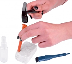 - Náradie v balení: dláto, kladivko, štetec, rozprašovač, ochranné okuliare
