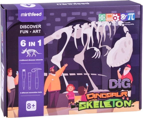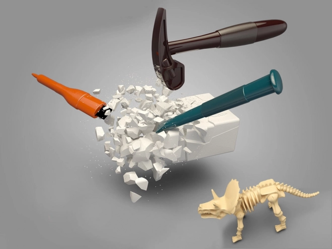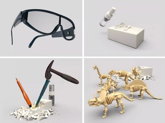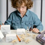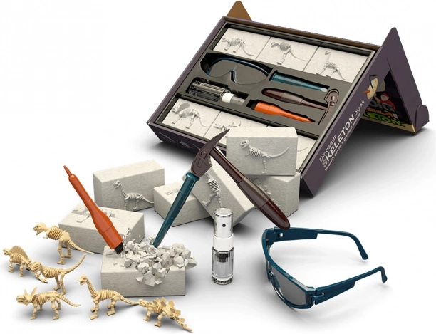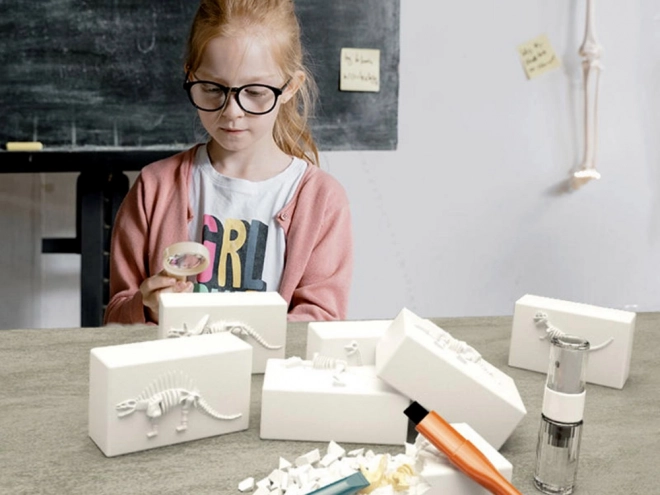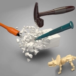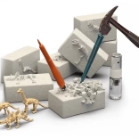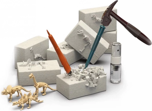 Sada je ideálna ako kreatívny a vzdelávací darček pre zvedavé deti. Postup je jednoduchý: navlhčiť, opatrne dlátkom a kladivkom odkrývať, prach zmiesť štetcom a napokon kostru zložiť. Výsledkom je malá domáca zbierka šiestich dinosauřích modelov.