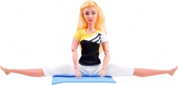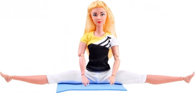 Flexibilná bábika s dlhými blond vlasmi je oblečená do športovej sady s elastickými legínami a topom, aby mohla pohodlne cvičiť. Kĺbová konštrukcia umožňuje realistické nastavenie rúk, nôh aj trupu, takže ľahko napodobní obľúbené ásany a gymnastické pozície.