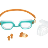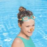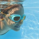 Plavecké okuliare určené pre deti od 7 rokov sú vybavené nastaviteľnými pásikmi, ktoré umožňujú presné prispôsobenie na hlave používateľa. Okuliare majú šošovky s ochranou proti UV žiareniu, ktoré chránia oči dieťaťa pred škodlivými slnečnými lúčmi. Mäkké, pohodlné očnice zabezpečujú komfort a zabraňujú prenikaniu vody.