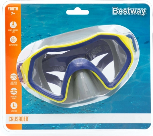 Doprajte deťom bezpečné a zábavné objavovanie podvodného sveta. Maska Bestway Crusader kombinuje široké zorné pole, pevné materiály bez latexu a spoľahlivé utesnenie, aby sa mohli sústrediť len na radosť z plávania.