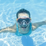 Polykarbonátová šošovka s UV filtrom chráni oči pred slnkom aj pri hladinovom plávaní. Nastaviteľný delený popruh umožní rýchle a presné dotiahnutie na rôznu veľkosť hlavy, takže maska drží na mieste aj pri skokoch do vody.