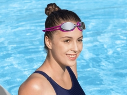 Štýlové plavecké okuliare BESTWAY Elite Blast Pro pre vek 14+ ponúkajú zrkadlové polykarbonátové šošovky s UV ochranou a antifog úpravou. Vďaka mäkkým silikónovým tesneniam, rýchlemu nastaveniu remienka a bezlatexovému, bez PVC prevedeniu skvele sedia a spoľahlivo tesnia pri tréningu aj rekreačnom plávaní.