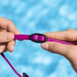 Rýchlo nastaviteľný silikónový remienok a pohodlný nosník umožňujú presné a stabilné usadenie pre rôzne tvary hlavy. Konštrukcia bez latexu a PVC je šetrná k pokožke, vhodná na pravidelné používanie v bazéne aj na otvorenej vode.