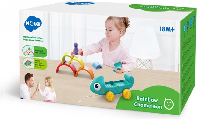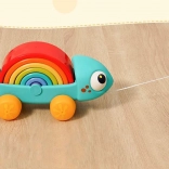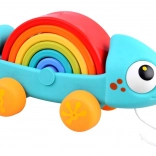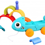 Ťahacia funkčnosť robí chameleóna ideálnym pre podporu dieťaťa v pohybe a chôdzi. Hračku je možné ťahať za šnúru.