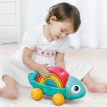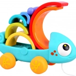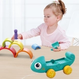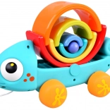 Chameleón podporuje hru s ťahaním a skladaním, pričom každý prvok interakcie posilňuje detské zručnosti.
