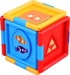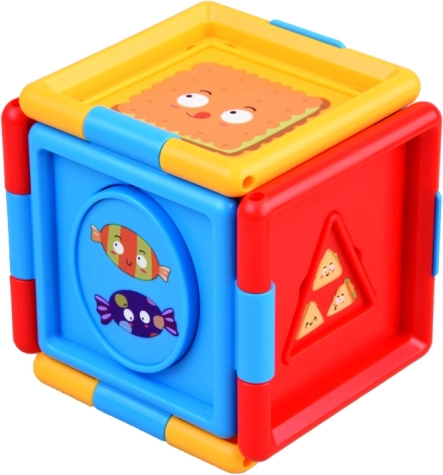 Kocka je zdobená farebnými obrázkami a živými farbami, čo ďalej zvyšuje jej príťažlivosť a povzbudzuje detskú zvedavosť. Je vyrobená z plastu, ktorý zaručuje jej odolnosť a bezpečnosť pre malých používateľov.