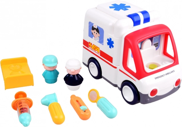Interaktívna sanitka je ideálnym darčekom pre všetkých malých medikov a záchranárov. Táto detailne vybavená sanitka je vždy pripravená zasiahnuť tam, kde je potrebná pomoc.