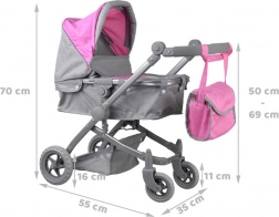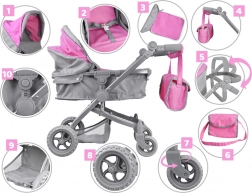 Štýlový kočík pre bábiky s možnosťou prestavby na hlboký aj športový režim ponúkne deťom realistickú hru na starostlivosť. Má ľahký rám, otočné kolesá, nastaviteľnú rukoväť a bezpečnostné pásy. Súčasťou je aj praktická taška na doplnky.