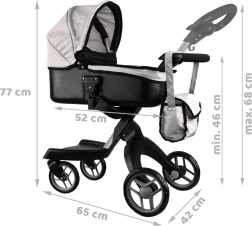 Moderný kočík gondola pre bábiky<\/strong>, umožní každému dieťaťu vziať na prechádzku svoju obľúbenú bábiku, plyšového medvedíka, maskota. Priestranný kočík na modernom dizajne sa veľmi ľahko riadi vďaka veľkým penovým kolesám, rukoväť kočíka možno jednoducho nastaviť podľa výšky dieťaťa. Kočík má dostatok priestoru pre umiestnenie bábiky na mäkkú matracu, strieška kočíka je skladacia a má odnímateľný poťah. Kočík je tiež vybavený priestrannou taškou na nevyhnutné príslušenstvo. A navyše: z nehož je kočík vyrobený, je veľmi pevný a bude slúžiť dlhé roky Rozmery:<\/strong> Deti si rady hrajú na rodičov, takže tento kočík splní požiadavky každého malého opatrovateľa. Teraz každé malé dieťa, bude môcť bez problémov chodiť so svojimi bábikami, medvedíkmi. Obchod Jokomisiada ponúka aj ďalšie farby a modely kočíkov.<\/span><\/p>.