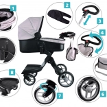 - kočík je stabilný a otočné kolesá zabezpečujú pohodlné riadenie a pohodlie pri hre