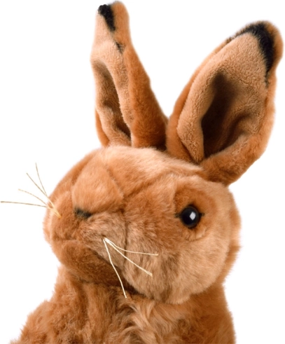 Plyšový králik zachytáva detaily skutočného zajaca, vrátane dlhých uší a roztomilých fúzov.