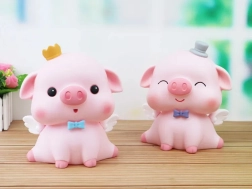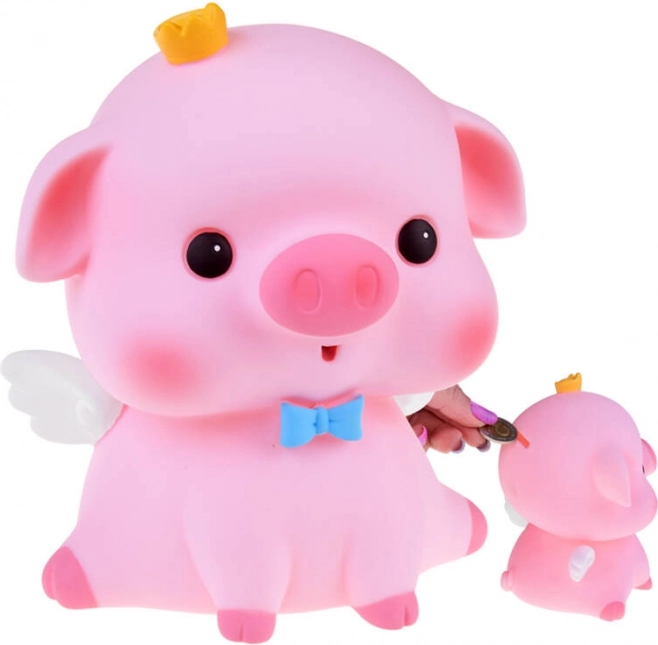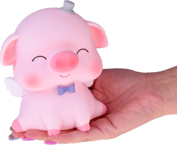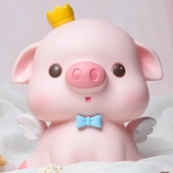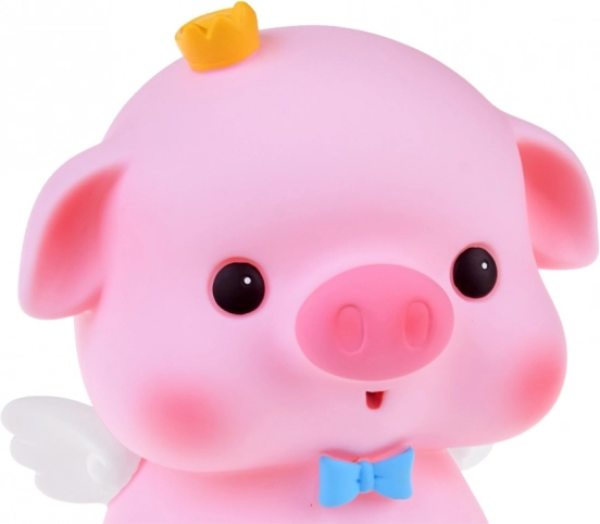 Ružové prasiatko s bielymi krídelkami, modrým motýlikom a žltou korunkou vyčarí úsmev a zároveň je štýlovou dekoráciou detskej izby či pracovného stola.