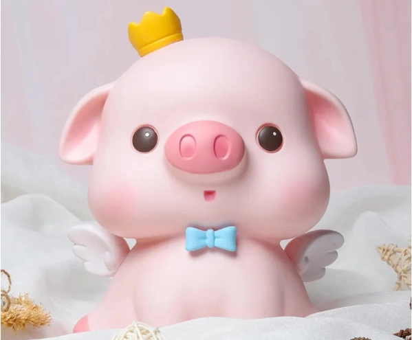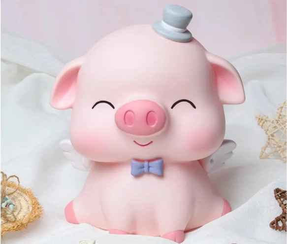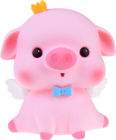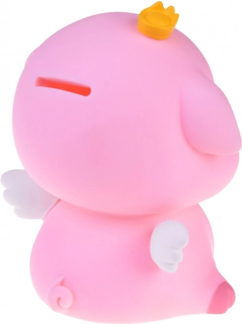 Táto pôvabná pokladnička v tvare ružového prasiatka s bielymi krídelkami, modrým motýlikom a žltou korunkou spája praktickosť a radosť. Umožní ukladať všetky bežné mince aj zložené bankovky a pritom zútulní interiér. Je ideálna pre deti, ktoré sa učia hodnote peňazí, aj pre dospelých, ktorí chcú mať drobné úspory prehľadne na jednom mieste.