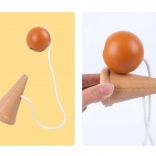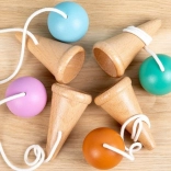 Objavte čaro jednoduchej, no chytľavej drevenej hry – stačí rozkývať guľôčku na šnúrke a pokúsiť sa ju chytiť na kužeľový držiak. V jednoduchšej variante ju usadíte do priehlbiny, v tej náročnejšej ju nasadzujete priamo na hrot. Táto nadčasová zábava rozvíja koordináciu oko–ruka a učí presnosti aj trpezlivosti.