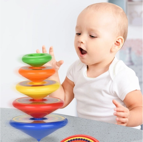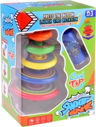 Táto farebná pyramídová sada káč je navrhnutá pre deti rôznych vekových kategórií. S pomocou praktickej rukoväte (launchera) sa káče ľahko uvedú do rotácie, čo zaisťuje plynulý a atraktívny pohyb na stole či podlahe. Hračka podporuje koordináciu oko–ruka, trpezlivosť a sústredenie.