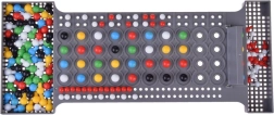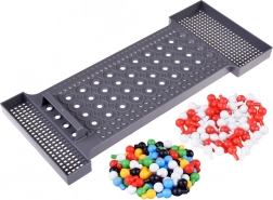Sivá plastová doska s mriežkou a úložnými priehradkami udržiava farebné kolíčky vždy poruke a hru prehľadnú.