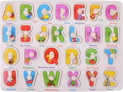 Farebná drevená tabuľa s 26 písmenami na úchytoch pomáha deťom učiť sa abecedu formou hry. Každé písmeno sprevádza obrázok a názov v angličtine, takže deti súčasne rozvíjajú slovnú zásobu. Vďaka pevným dreveným dielikom a prehľadnému rozloženiu je hračka odolná, bezpečná a zábavná. Podporuje jemnú motoriku, rozpoznávanie tvarov, logické myslenie a učenie angličtiny.
