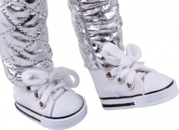 Bábika je oblečená do hrejivého zimného outfitu: mäkký ružový kožúšok, štýlové strieborné nohavice a biele šnurovacie tenisky dopĺňajú zimné klapky na uši pre dokonalý vzhľad. Skvelá voľba na rozvoj jemnej motoriky, fantázie a sociálnych zručností.