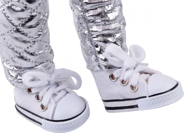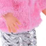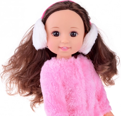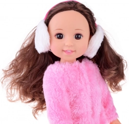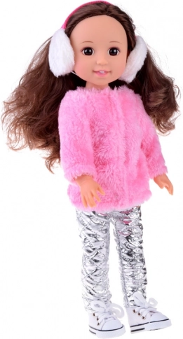 Roztomilá bábika s výškou 38 cm v zimnej módnej výbave poteší každú malú parádnicu. Má dlhé hnedé vlnité vlasy, ktoré možno česať a upravovať do účesov, a nosí mäkučký ružový kožúšok, biele klapky na uši, strieborné prešívané nohavice a biele šnurovacie tenisky. Vďaka pohyblivým končatinám je ideálna na kreatívnu a nápaditú hru.