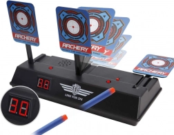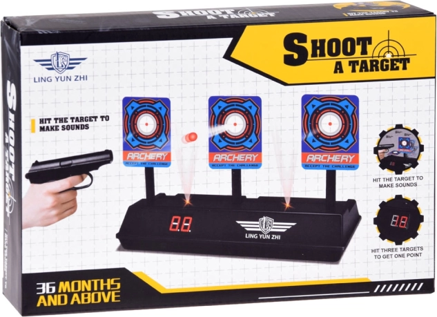 Vďaka kompatibilite s hračkami na penové náboje (napr. Nerf) si terč užijú deti aj dospelí. Pevná plastová základňa zabezpečuje stabilitu na stole či podlahe a jednoduché ovládanie uľahčí rýchly štart hry.
