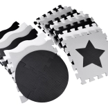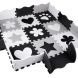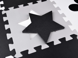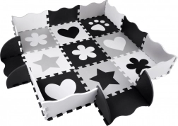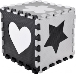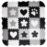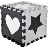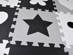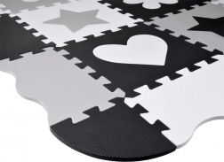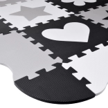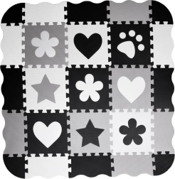 Penová herná podložka z EVA peny chráni pred chladom podlahy, tlmí pády a podporuje rozvoj jemnej aj hrubej motoriky. Neutrálny kontrastný dizajn so srdiečkami, hviezdami a ďalšími tvarmi sa hodí do každého detského izbičky aj obývačky.