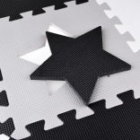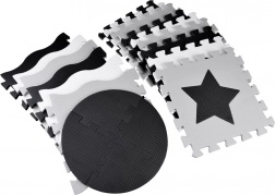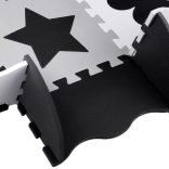 Štýlová a bezpečná detská podložka z penových puzzle v odtieňoch sivej, čiernej a bielej vytvorí mäkký a hygienický priestor na hranie. Sada obsahuje 16 veľkých dielikov s vyberateľnými tvarmi, protišmykovou povrchovou úpravou a tepelnou izoláciou. Vďaka možnosti spájania aj do výšky možno vytvoriť malú ohrádku/upravený priestor na hračky alebo loptičky.