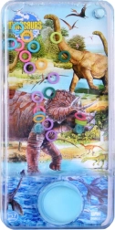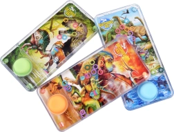 Vodná hra s dinosaurami je ideálna pre malých aj veľkých hráčov, ktorí chcú posilniť svoju koordináciu a trpezlivosť. Ovládanie je jednoduché – pomocou jedného tlačidla musíte uviesť do pohybu farebné krúžky, ktoré sú uzavreté vo vodnej komore, a pokúsiť sa ich umiestniť na kolíky. Tento typ hry je ideálny na cesty vďaka svojej kompaktnej veľkosti, čo umožňuje mať zábavu vždy po ruke, či už ste v škole alebo na dovolenke. Hra je navrhnutá s atraktívnymi prehistorickými ilustráciami dinosaurov, ktoré oslovia každého milovníka týchto fascinujúcich tvorov.