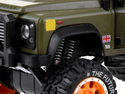 Kovová karoséria v zelenej farbe je doplnená gumovými behúňovými kolesami a realistickými svetelnými efektmi.