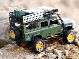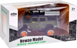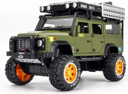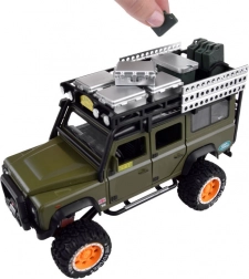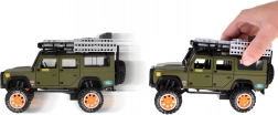 Objavte kvalitne spracované kovové terénne vozidlo pre každého malého dobrodruha. Vozidlo je v štýlovej zelenej farbe s dôkladne prepracovanými detailami ako je strešný nosič s kanystrom a krabicami.