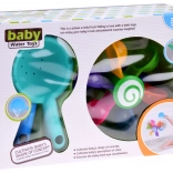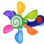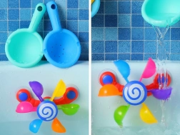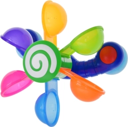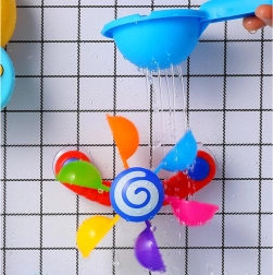 Umožní vášmu dieťaťu užiť si zábavu s farebnými pohyblivými kalíštekmi, ktoré sa otáčajú, keď sa na ne lije voda, tým sa dieťa učí pojmy pohybu a spätné reakcie. Táto hračka podporuje motorický rozvoj, kognitívne funkcie a koordinačné schopnosti. Počas hry sa dieťa môže učiť farby, počítanie a predstavovať si rôzne príbehy. Táto hračka do kúpeľa je ľahko premiestniteľná a demontovateľná, čo umožňuje jej umiestnenie na boky vane, sprchy alebo bazéna. Farebná dúha kalíštek sa začne točiť okolo dokola, zatiaľ čo voda chrlí a stimuluje sluch dieťaťa.