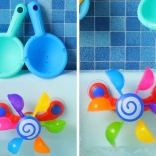 Dieťa môže liať vodu na hračku špičkou sprchy alebo pomocou lopatky či sitka, čo ponúka hodiny zábavy a učenia.