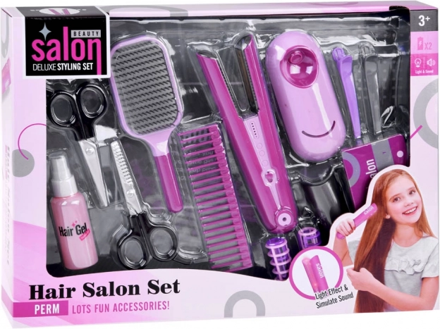 Set obsahuje sušič vlasov s efektmi zvuku a svetla, čo dodáva zábavný prvok každému účesu.