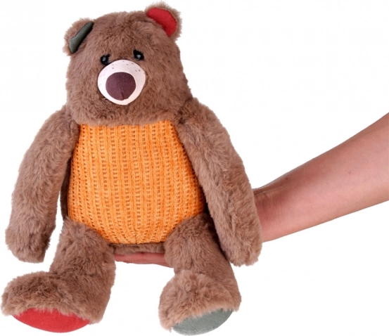 Roztomilý plyšový medvedík Teodor je dokonalým kamarátom pre malé i veľké deti. Tento mäkký hnedý medveď je ideálny na objímanie a dodáva pocit pohodlia a bezpečia. Jeho výrazné farby - oranžový pletený sveter, zelené a červené uši a labky dodávajú hračke veselý vzhľad.