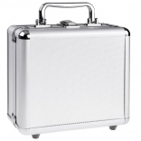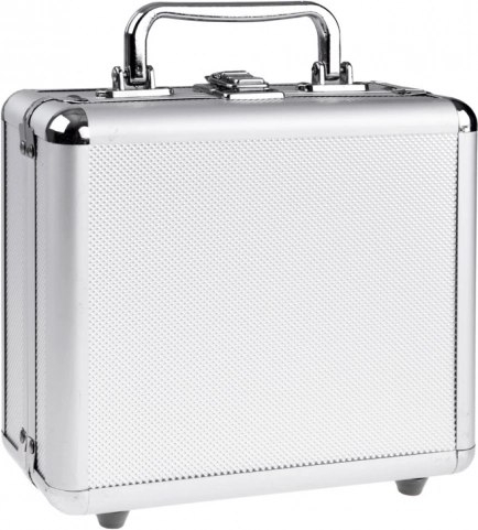- Elegantný kovový kufrík s čiernym zamatovým polstrovaním poskytuje štýlové skladovanie.
