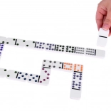 - Obsahuje 91 domino kociek a všetky potrebné doplnky na hru.