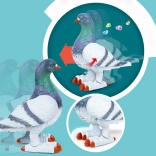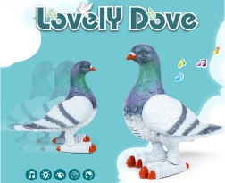 Interaktívny holub sa dokáže pomaly pohybovať vpred, máva krídlami a bliká očami, čo je doplnené veselou melódiou.