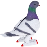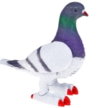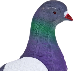 Hračka starostlivo napodobňuje vzhľad skutočného holuba, vrátane farebného prechodu na hlave a detailných prvkov, ako sú pazúry a perie.