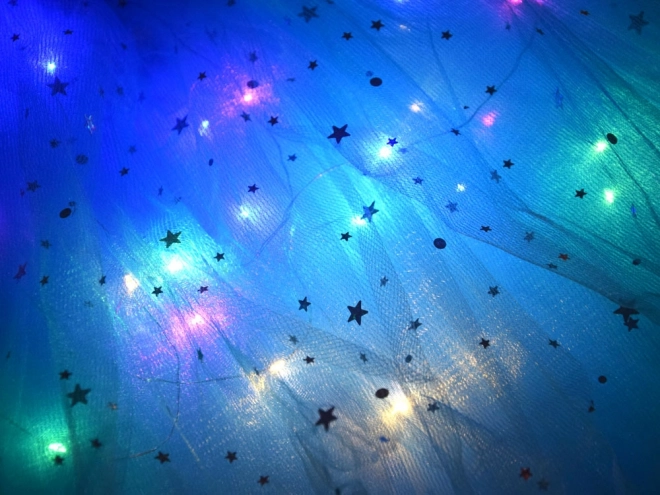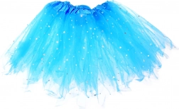 Modrá tylová sukňa zdobená hviezdičkami a LED svetlami pre magický vzhľad. Elastický pás zaisťuje pohodlné nosenie.