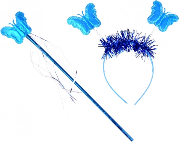 - Modrá čarovná palička s dekoratívnymi stuhami