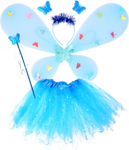 Tento nádherný kostým víly v modrej farbe urobí radosť každej malej dievčine. Kostým zahŕňa sukňu s LED svetlami, krídla, čelenku a čarovnú paličku, a poskytne magický zážitok pre každú príležitosť.