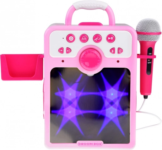 Ružový detský boombox je ideálnou zábavou pre každého malého milovníka hudby a karaoke. Tento skvelý hudobný reproduktor ponúka množstvo funkcií a je vybavený zrkadlovým predným panelom s farebnými svetelnými efektmi.