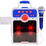 Užite si hudbu a zábavu s naším detským modrým Boomboxom! Tento fantastický reproduktor je ideálny pre deti, ktoré milujú spievať, hrať sa na DJ-a alebo tancovať. Ponúka skvelú zábavu s karaoke. Vyrobený z kvalitného plastu s dôkladnou pozornosťou k detailom, tento reproduktor očarí zrkadlovým predným panelom, ktorý po zapnutí bliká a odráža farebné svetlá.
